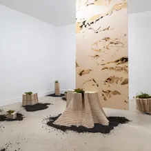 Echoes of Time strives to artistically depict the parallels and distinctions between human and tree growth through organic shapes and textures. It represents these connections and invites us to reframe our understanding of memories through playful and functional sculptural arrangements. Crafted from marine-grade plywood, meticulously cut via CNC, and treated for exterior use. Each layer is stacked to create forms reminiscent of trees, inviting interaction through sitting, climbing, or standing.