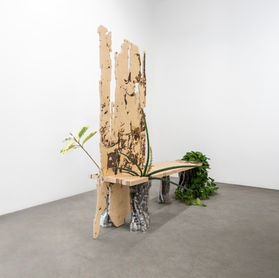 Le bois a été sculpté pour créer l'effet dimensionnel de la peinture. Il remet en question les manières traditionnelles de peindre